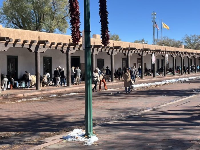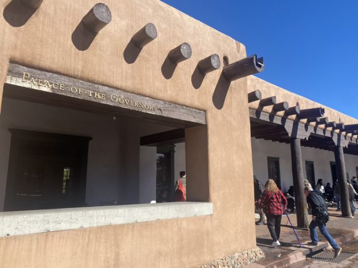 サンタフェ・プラザに面した歴史的建物で1610年建設、スペイン植民地時代の行政の中心だったところ。建物前にネイティブアメリカンの職人がジュエリーや工芸品を販売しています。有名なアーティストではないですが、安くで買えるチャンス。