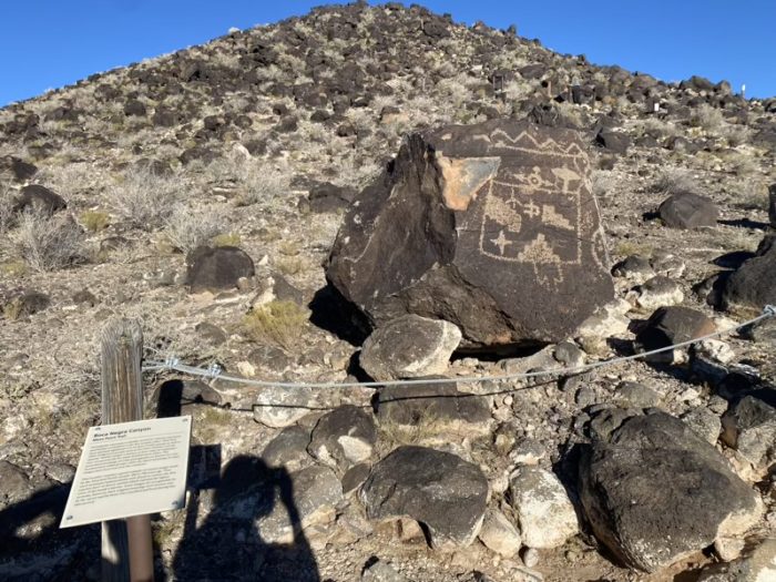 数百年前から数千年前にかけてネイティブアメリカンやスペイン人が刻んだ岩絵が残っています。火山岩に描かれた丸や矢印、動物の形など、今もはっきりと見えます。小さなハイキングコースもあり、散歩しながら岩絵を間近で見ることができます。