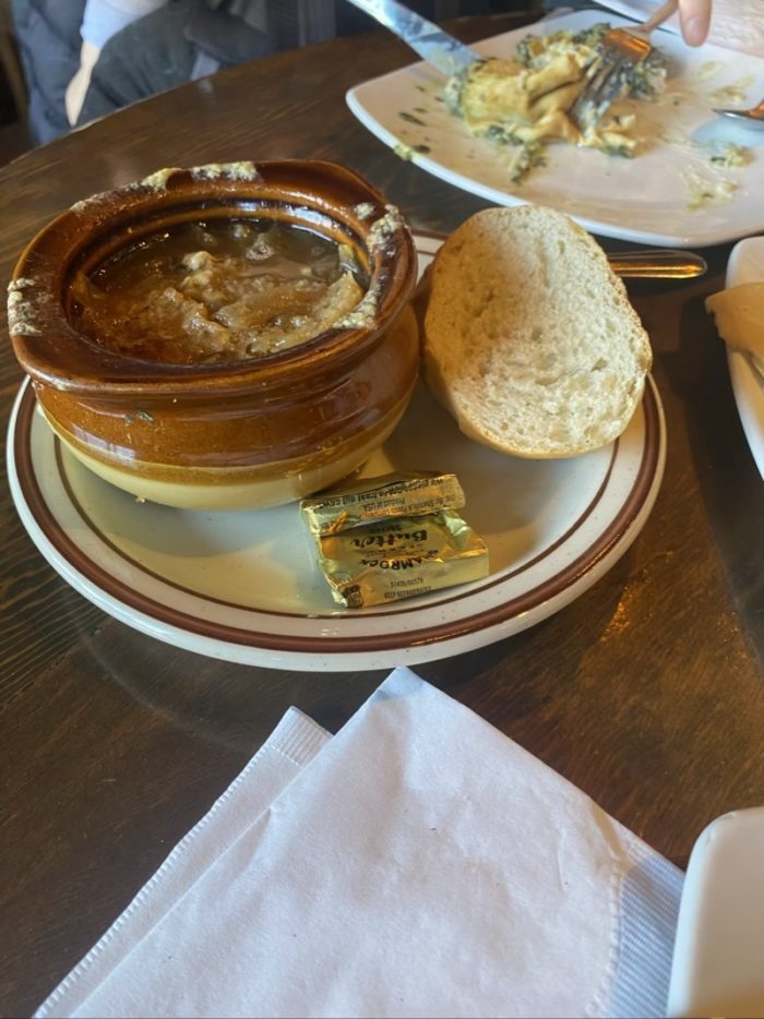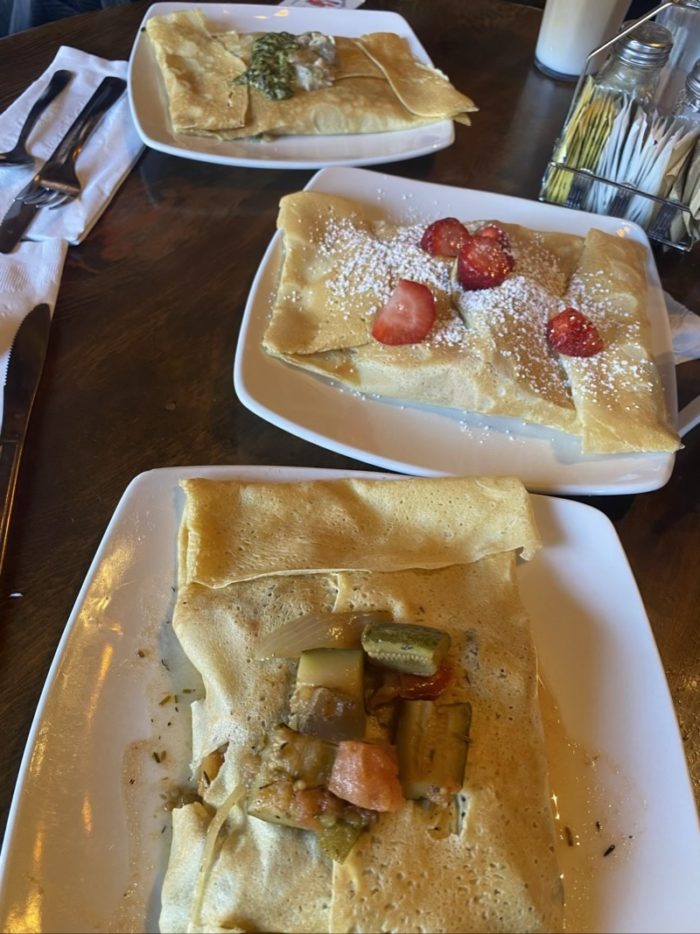 クレープのお店です。たくさん種類のあるクレープも美味しいのですが、French Onion Soupが衝撃的に美味しかったので、おすすめさせていただきます。La Fonda on the Plazaのホテルの建物の中にあります。人気店で並んでいましたが、15分くらいで入れました。