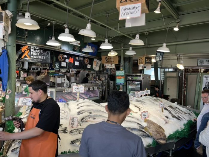 シアトル名物の魚投げパフォーマンスが見られる人気スポット。