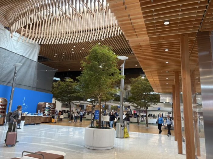 ポートランド国際空港は木を多用したデザインで温かみのあるおしゃれな雰囲気。到着してすぐに街の雰囲気を感じられます。