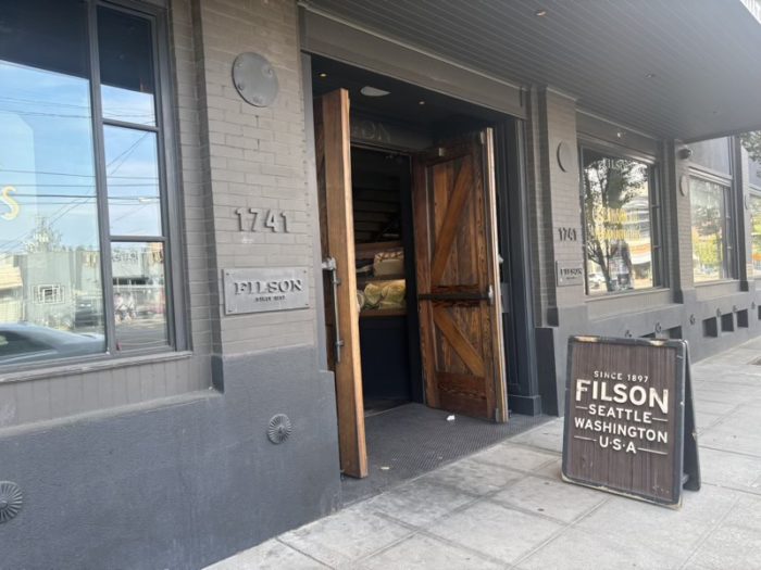 アウトドア用品やバッグ、アパレルで有名なFilsonの本店。丈夫で長く使えるアイテムが揃っており、店内はとても広く見て回るだけでも楽しいです。