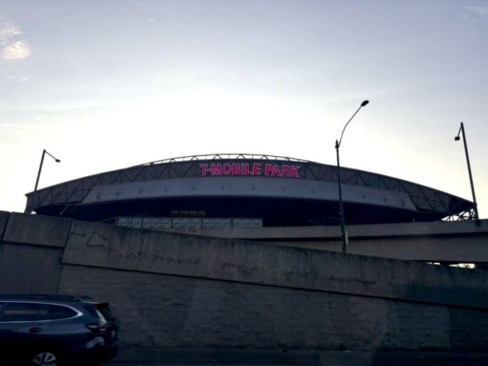 イチロー選手が長年在籍していたシアトル・マリナーズの本拠地(T-Mobile Park)があります。通りながらスタジアムの雰囲気を感じられました。